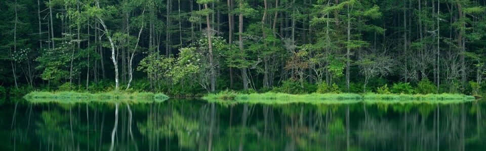 Mishaka Pond is known as the inspiriation for Midori Hibiku (Green Echoes), a work by the famous Japanese painter Kaii Higashiyama. The pond is located in the mountains at an elevation of 1,500m, and the spot is visited by numerous tourists and photographers due to the beautiful sight of the background landscape reflected on the water surface.